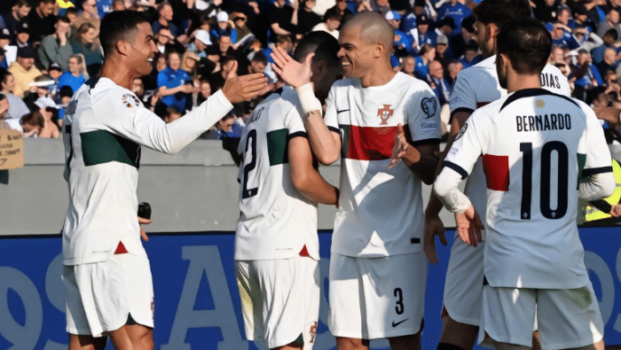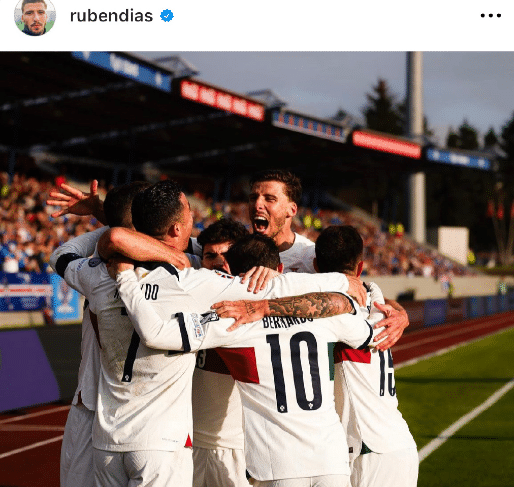 很快队友达洛特、鲁本迪亚斯、若塔更新社交媒体,恭喜C罗国家队200场,取得了重要进球。葡萄牙队继续在欧洲杯预选赛保持全胜,整体的表现非常出色。