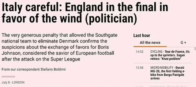 24直播网讯《米兰体育报》日前撰文谈到英格兰在欧洲杯半决赛得到的点球,他们表示这是欧足联在回报英国阻止了欧超联赛计划。片