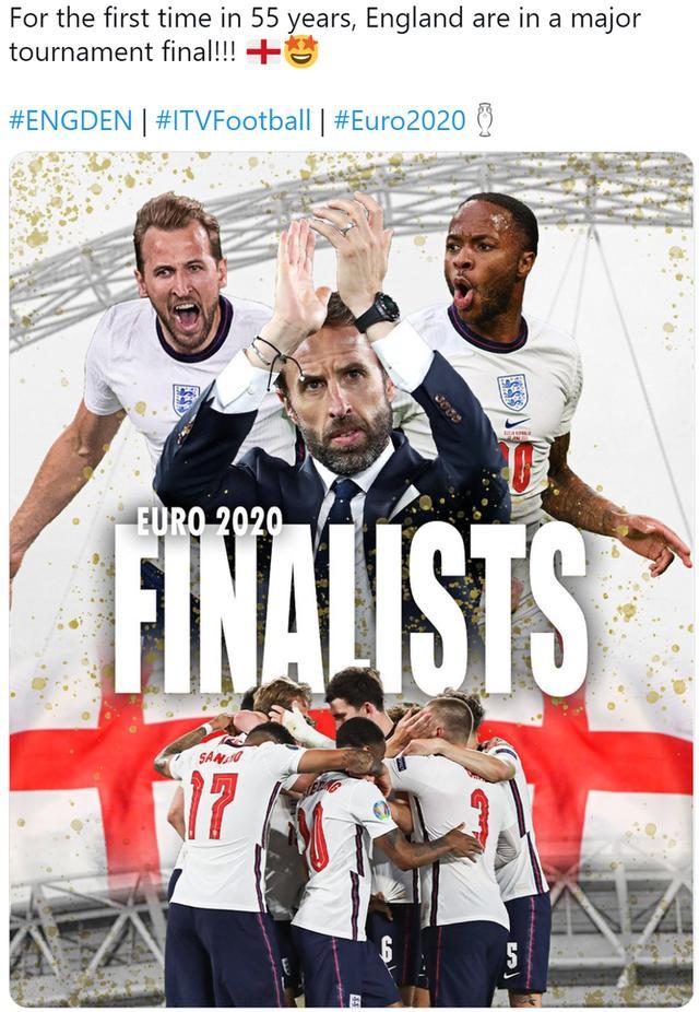 这是英格兰队史第一次进入欧洲杯决赛,也是他们历史上第二次进入国际大赛决赛。