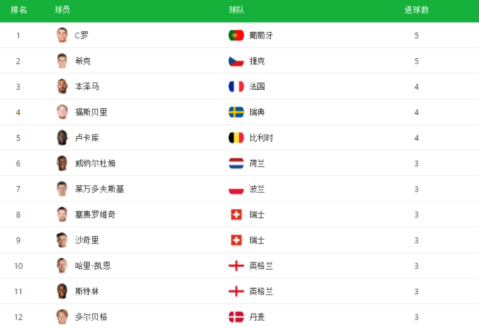欧洲杯进行到现在,只剩下3场比赛,两场毕竟是和一场决赛,最高荣誉都是各队渴望的,而球员层面,金靴奖之争也变得白热化,目前C罗以5球领跑,同样被淘汰的希克也是打进5球,但因为0助攻少于C罗的1次助攻,所以C罗依旧是射手榜的第一名。