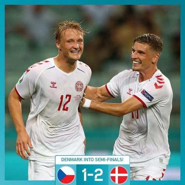 24直播网讯北京时间7月4日,丹麦2-1捷克挺进4强,丹麦成为欧洲杯首支输掉两场小组赛仍晋级4强的球队。