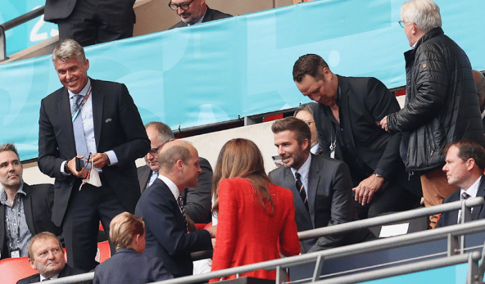 而在现场,英国当地的关注度自然更高,主场、死敌、争夺八强等等一系列的因素加起来,使得现场来了很多文体明星,其中比赛还没有开始前,镜头就不断的对准了来到现场的王室成员,威廉王子携凯特王妃助威英格兰队,小王子乔治也陪同父母出现在现场。
