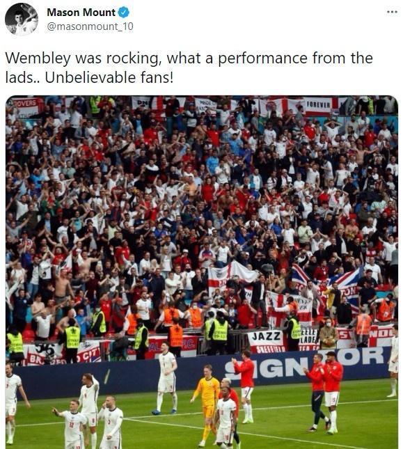 芒特写道:“温布利沸腾了!兄弟们的表现太棒了,还有难以置信的球迷们!