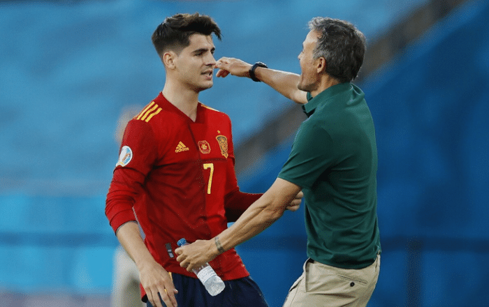 西班牙在小组赛踢得非常“快乐”,三轮比赛1胜2平,不过三轮比赛越踢越好,首轮0-0瑞典,次轮1-1英格兰,第三轮5-0大胜斯洛伐克。今年,西班牙总共踢了8场比赛,4胜4平保持不败,整体状态看似稳定,但是韧劲明显不足,踢硬仗存在诸多短板,锋线球员的把握机会能力严重不足,关键时刻,7号莫拉塔和9号赫拉德-莫雷诺屡屡浪费绝佳机会。