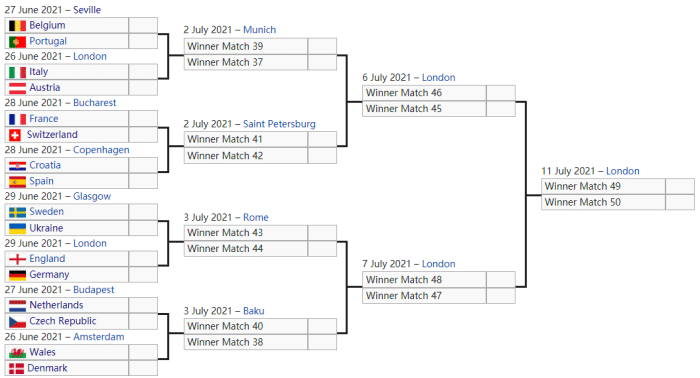 欧洲杯16强上半区对阵:比利时vs葡萄牙、意大利vs奥地利;法国vs瑞士、克罗地亚vs西班牙