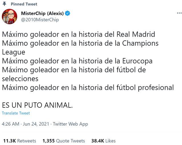 赛后这位记者在推特上写道:“皇家马德里队史头号射手,欧冠联赛历史头号射手,欧洲杯历史头号射手,世界足坛国家队头号射手,世界职业足坛头号射手,C罗,你真是个他x的野兽!”