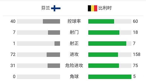 全场比赛结束,最终比利时2-0芬兰。
