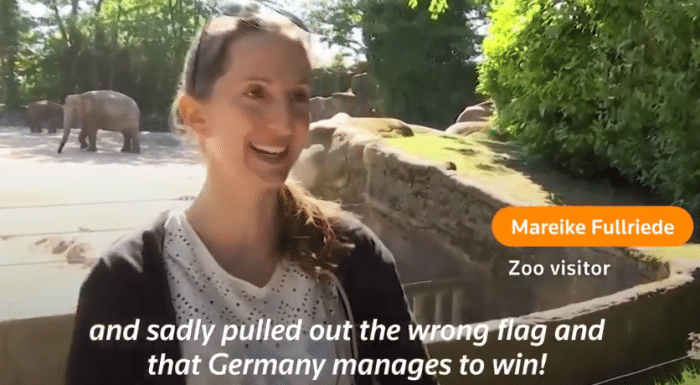 这个大象来自德国,预测的时候预测的是法国队获胜,一旁的路人也是有些尴尬,很显然大家都不希望看到这样的结果。汉堡动物园管理员在接受采访的时候也表示:不知该哭还是该笑?