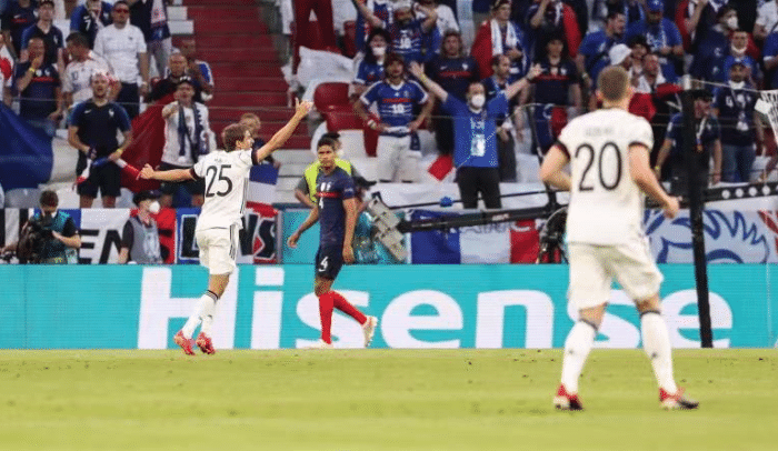 来源:24直播网06-16 10:5824直播网讯北京时间6月16日,欧洲杯小组赛首轮最后一场比赛,德国队面对法国队的比赛万众瞩目,最终法国队以1-0击败德国队,斩获球队在本届欧洲杯的开门红。上半场卢卡斯传中造成胡梅尔斯乌龙,这也是德国队历史上首度在欧洲杯打进乌龙球。之后德国队展开狂轰乱炸,可惜均未取得进球,下半场姆巴佩第66分钟取得进球,可惜越位在先。随后姆巴佩助攻本泽马进球,依旧是越位。最终法国队小胜德国队,拿下开门红。