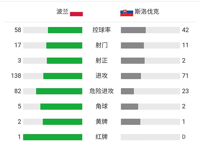 全场比赛结束,斯洛伐克2-1力克波兰,取得宝贵3分。
