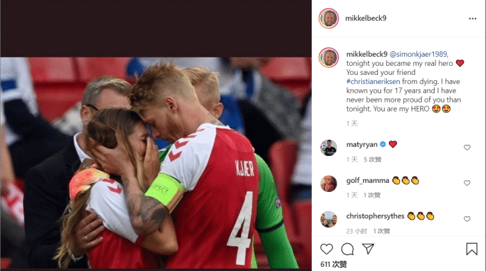 克亚尔,今晚你成为了我的英雄,你拯救了你的朋友埃里克森的性命。我已经认识你17年了,但我从没有像今天这样为你感到骄傲,你是我的英雄!