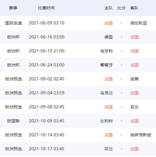 前锋:本泽马(皇马)、吉鲁(切尔西)、姆巴佩(巴黎圣日耳曼)、马库斯-图拉姆(门兴)、科曼(拜仁)、本-耶德尔(摩纳哥)、格列兹曼(巴萨)、勒马尔(马竞)、登贝莱(巴萨)