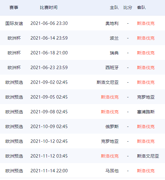 斯洛伐克队欧洲杯26人球员大名单及赛程一览