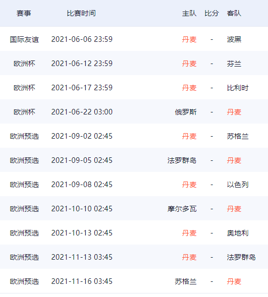 丹麦队欧洲杯26人球员大名单及赛程一览
