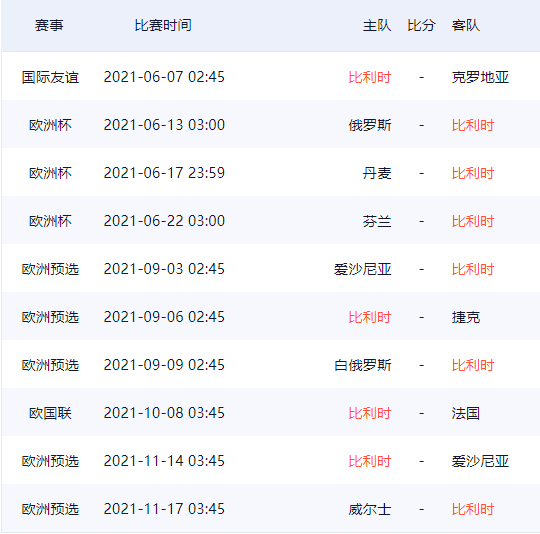 比利时队欧洲杯26人球员大名单及赛程一览