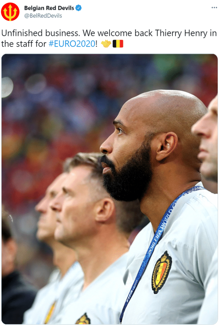 2019年11月,亨利成为蒙特利尔冲击主帅,今年2月,他辞去这一职务,现在他已经重回比利时国家队,将随队征战今夏的欧洲杯。