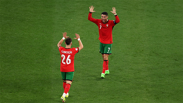 来源:24直播网06-19 13:4724直播网讯 本届欧洲杯第一个伤停补时绝杀来袭,在欧洲杯小组赛F组第1轮,葡萄牙队以2比1逆转击败捷克队,拒绝爆冷。这场比赛C罗首发登场,个人第6次征战欧洲杯、第26次欧洲杯出场,均创造新历史。期间,葡萄牙队的主帅马丁内斯上演神换人,内托和孔塞桑登场,在第92分钟,内托传球,孔塞桑破门绝杀,为球队带来胜利。