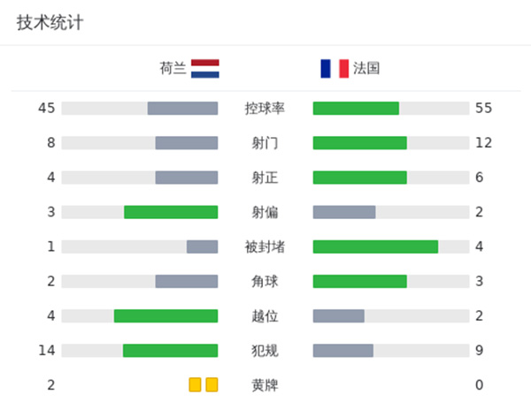 法国首发:16-迈尼昂、22-特奥、21-卢卡斯、13-科纳特、3-克劳斯(80' 4-古斯托)、8-琼阿梅尼、7-格列兹曼(87' 18-福法纳)、14-拉比奥特、20-科曼(71' 9-吉鲁)、10-姆巴佩、12-穆阿尼(80' 15-图拉姆)