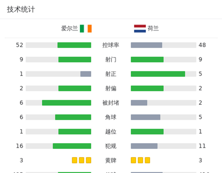 全场比赛结束,荷兰2-1爱尔兰!