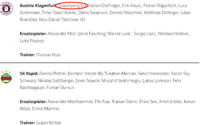 24直播网04月03日讯 奥地利当地时间昨天进行的一场U18联赛中,克拉根福U18以1-7的比分大败给维也纳快速U18,刘邵子阳首发出场并打满全场。