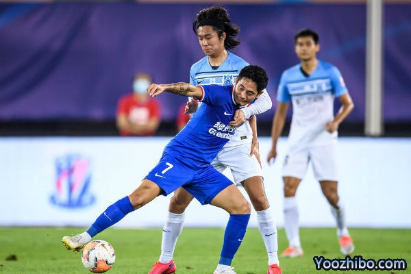 第28分钟,彭欣力右侧角球开到禁区,前点朱辰杰头球攻门被韩佳奇没收。第33分钟,朱宝杰前场拿球盘带被李提香放倒,李提香吃到了一张黄牌。随后莫雷诺外围送出直塞到禁区,赵明剑插上抢在出击的韩佳奇之前右脚外脚背打门稍稍偏出。