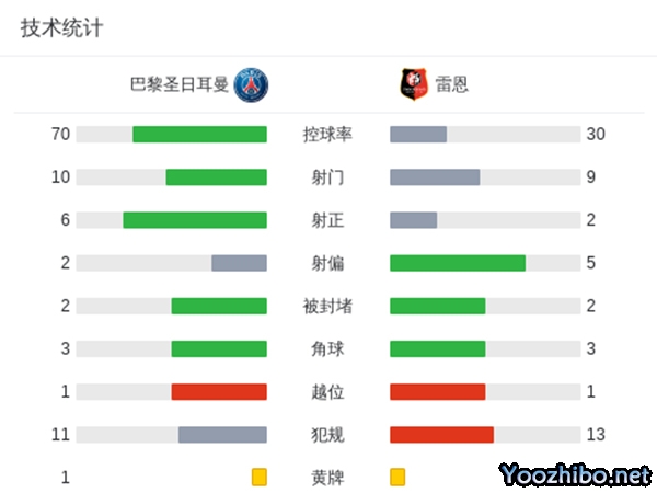 巴黎1-0雷恩 姆巴佩失点+中框+制胜球