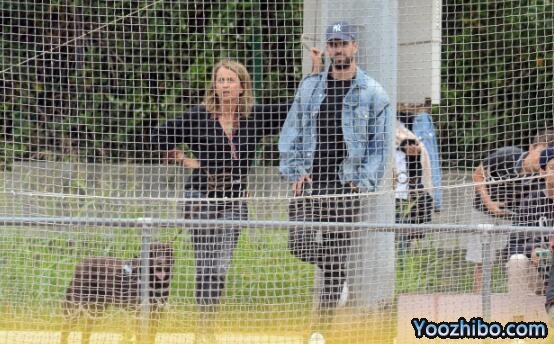 从曝光的照片可以看到,穿着帅气牛仔衣、戴着棒球帽的皮克,手插裤兜与母亲站在球场一侧,而一身便装戴着墨镜的夏姐,则与母亲还有好友,站在球场的另一侧。