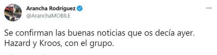 该记者表示,为大家带来好消息,阿扎尔和克罗斯今日参加了皇马的合练。