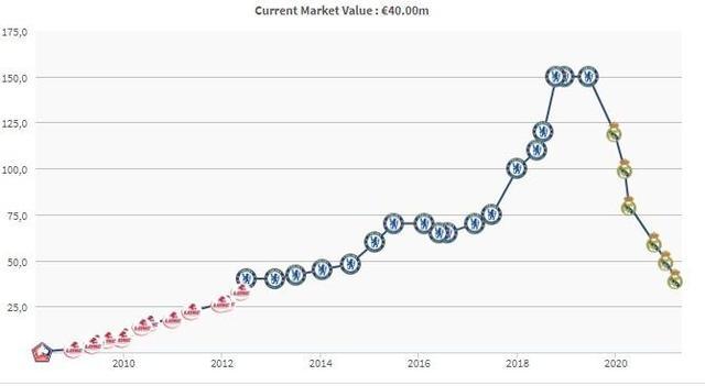 值得注意的是,在加盟皇马以来,阿扎尔的身价一路下跌,目前4000万欧元的身价已与他2013年年初的身价相同。
