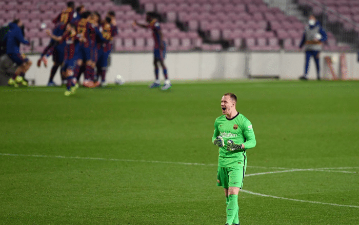 比赛结束之后的评分,没有取得进球的梅西获得了8.5分的最高分,比进球的登贝莱7.9分、皮克8.2分、替补打进关键球的布莱斯维特7.1分和扑出点球的特尔施特根8.0分还要高。