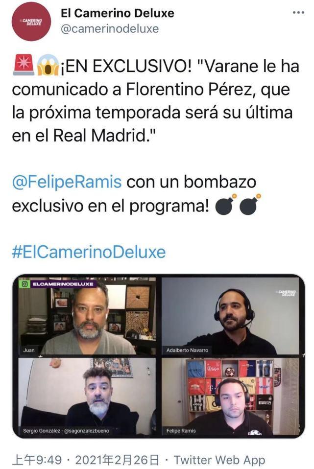 来源:24直播网02-26 19:5724直播网2月26日讯 北京时间2月26日,来自西班牙知名记者费利佩-拉米斯的透露,效力于西甲豪门皇家马德里的法国中卫瓦拉内,已经告知了俱乐部的主席弗洛伦蒂诺,关于自己离队的想法。