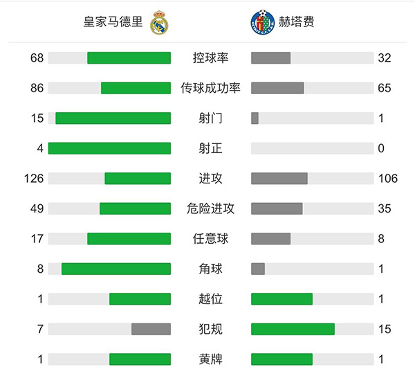 第60分钟,维尼修斯右路传中,本泽马高高跃起头槌破门,皇马1-0领先赫塔费