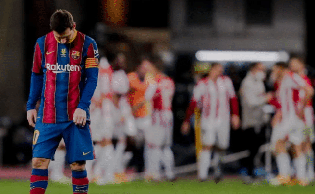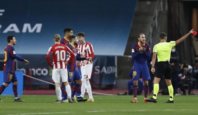 来源:24直播网01-18 11:5324直播网1月18日讯 今天对于巴萨的球迷们来说心情一定很糟糕,主队在西班牙超级杯决赛中2-3输给毕尔巴鄂竞技,无缘冠军,“大热必死”这样的言论在巴萨身上得到了佐证。比赛进行到最后时刻,梅西挥拳动作击倒比利亚利夫雷,被直接出示红牌罚下,这也是梅西在巴萨职业生涯的首张直接钟红牌。球队丢冠+梅西染红,这样的消息确实不能令巴萨的球迷们感到满意。