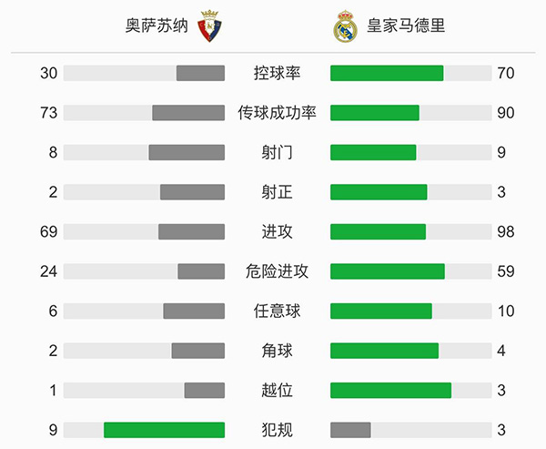 皇马0-0闷平奥萨苏纳 本泽马进球被吹阿扎尔低迷