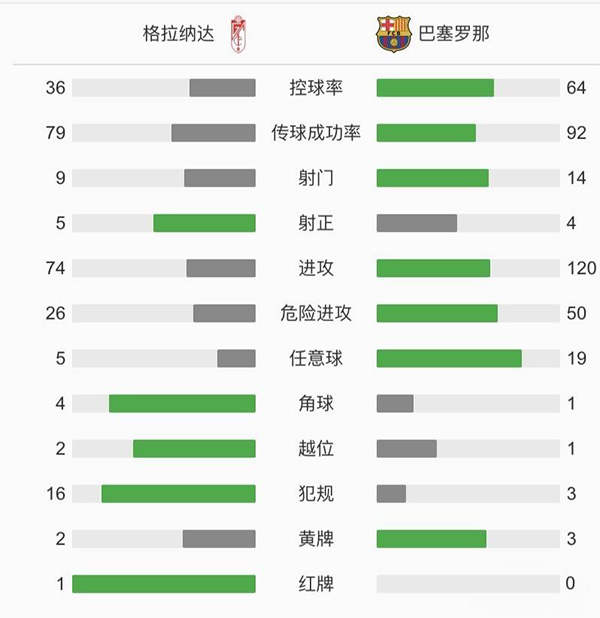 巴塞罗那4-0胜格拉纳达 梅西双响格子两射一传