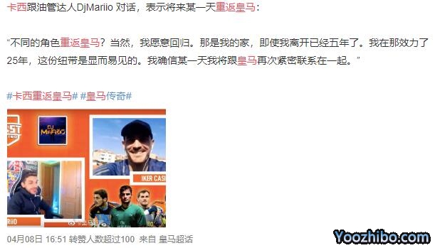 有意思的是早在今年4月份卡西跟油管达人DjMariio对话交谈中,就表示将来某一天想重返皇马: