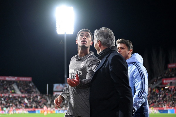 来源:24直播网12-08 16:1524直播网讯在北京时间12月8日凌晨结束的西甲第16轮一场焦点战中,皇马客场3-0力挫赫罗纳,少赛1场落后榜首的巴萨2分。不过尽管皇马客场大胜,主帅安切洛蒂却笑不出来。因为此役贝林厄姆、门迪和恩德里克,先后因伤离场,让本就伤病满营的皇马更加雪上加霜。