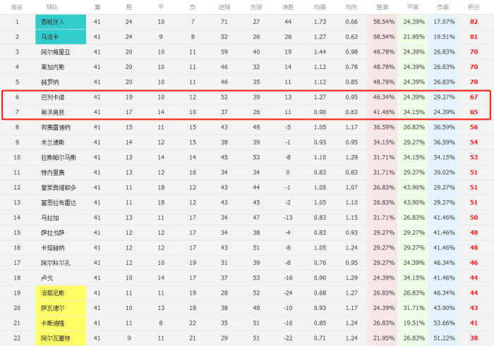 第41轮比赛,西乙劲旅希洪竞技再次掉链子,以0-0爆冷被富恩拉夫拉达逼平,从而直接被巴列卡诺甩开2分,原本双方40轮过后同积64分,现在拿到一分的希洪竞技只有65分,本轮2-0赢下卡斯特利翁的巴列卡诺拿到了67分,最后一轮巴列卡诺只要不输球便可锁定附加赛名额。