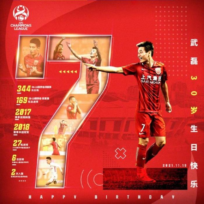 24直播网11月19日讯 亚冠官博写道:“队史中超首冠、跻身亚冠四强、27球斩获中超金靴……从崇明岛走出的青涩少年,现在已是名震亚洲的锋线尖刀。胜广州破水原克东京,难忘那一抹红衫。祝武磊30岁生日快乐!”
