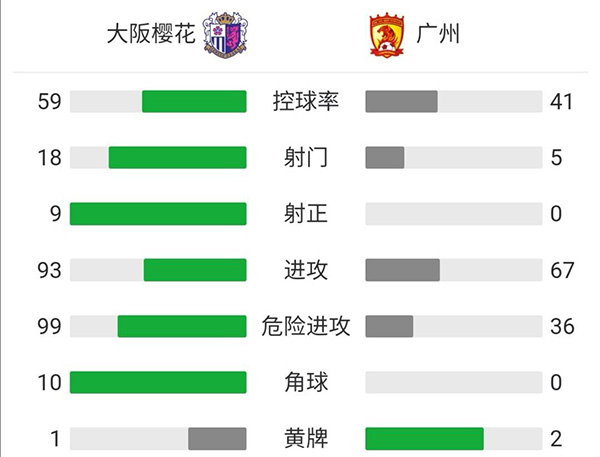 全场比赛结束,广州队0-5不敌大阪樱花。