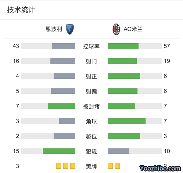 全场比赛结束,AC米兰3-1恩波利。