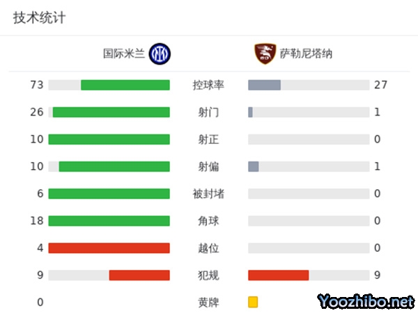 全场比赛结束,最终国米4-0萨勒尼塔纳。