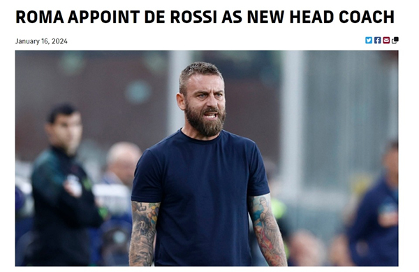 来源:24直播网01-17 13:3624直播网01月17日讯 ,意甲罗马俱乐部官方宣布,40岁的俱乐部名宿德罗西,将会接替穆里尼奥出任球队的新主帅。德罗西的任期至2024年6月30日,他将会带队踢完本赛季剩余比赛。