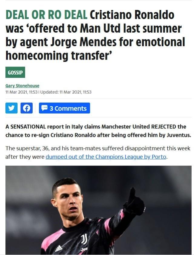 据悉,C罗的经纪人早在去年夏天就曾希望他的客户离开尤文,为此他甚至向曼联和巴黎圣日耳曼推荐C罗。但遗憾的是,两家豪门却不约合同的拒绝了。尤其是老东家曼联,尽管C罗曾将曼联带上欧洲之巅,但已经36岁的他并不符合目前球队的建队计划,曼联也无意为其开出高昂的薪水。