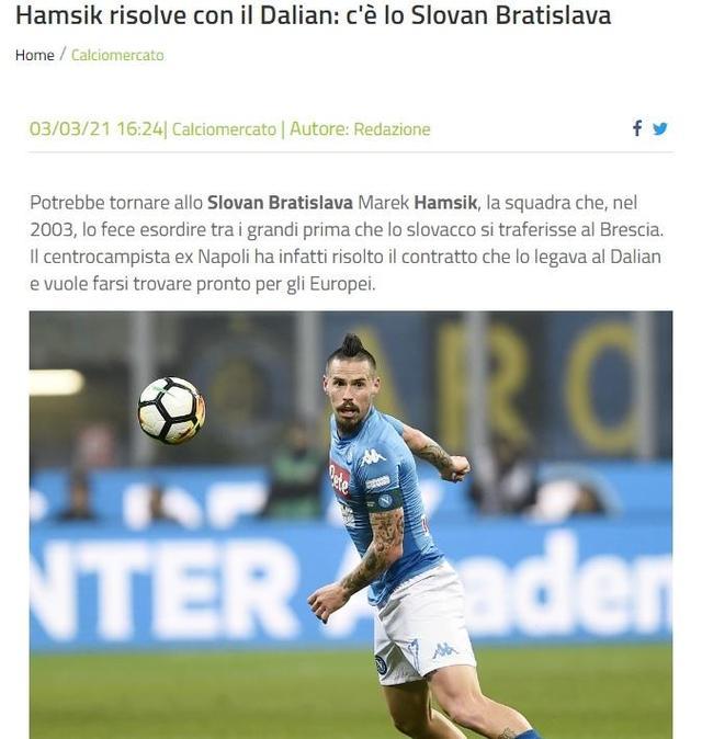 此前有报道称,哈姆西克已与布拉迪斯拉发达成协议,不过随后该俱乐部高层否认了这一传言。