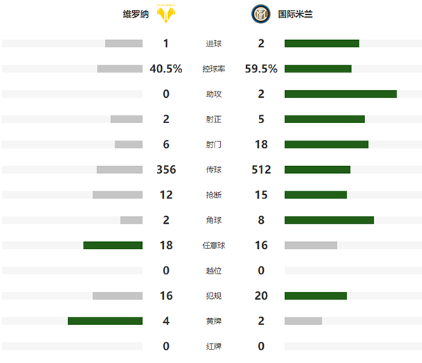 第62分钟,维罗纳扳平比分。法拉奥尼右路下底传中,汉达诺维奇扑救脱手,皮球弹到什克里尼亚尔身前,伊利奇推射捡漏破门,维罗纳1-1国米。