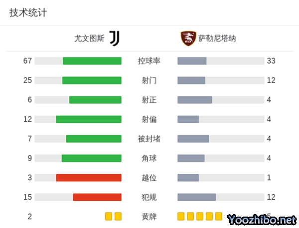 全场比赛结束,最终尤文图斯1-1萨勒尼塔纳。