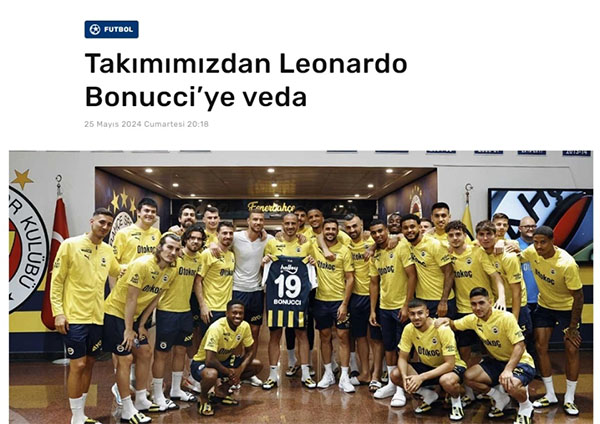 来源:24直播网05-27 15:3624直播网讯 北京时间5月26日,土超豪门费内巴切俱乐部官方宣布,效力该队的37岁意大利中卫博努奇,将于本赛季结束后正式退役。