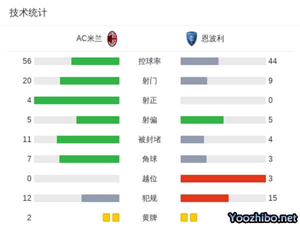 第19分钟,莱奥禁区右侧调整后左脚射门被对手封堵,莫拉塔无人盯防,迎球再射得手,AC米兰1-0恩波利。