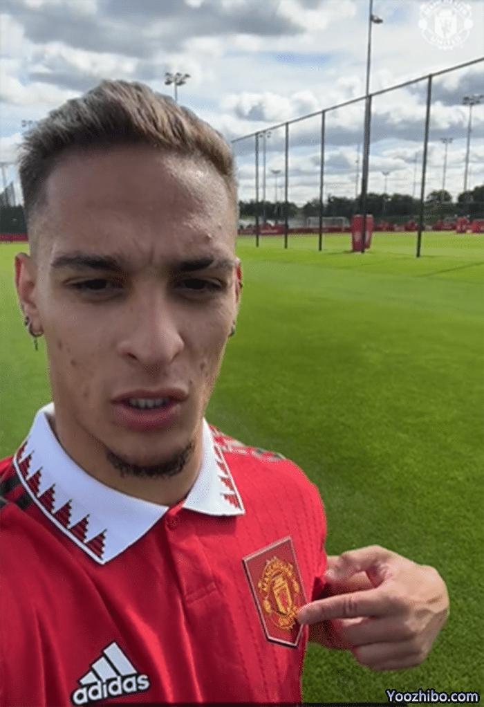 而在一段他自拍的视频中,安东尼则指着曼联队徽向球迷表示:「球迷朋友们好,安东尼已经来到这里。我已经穿上这件战袍,属于世界上最大的俱乐部。在这里我要告诉你们,我感到真正兴奋,非常期待穿上这件球衣出场比赛,向球迷致敬。非常爱你们,让我们一起创造历史。」